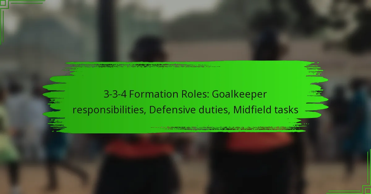 The 3-3-4 formation is characterised by a dynamic interplay between the goalkeeper, defenders, and midfielders, each fulfilling specific roles to enhance team performance. The goalkeeper is essential for shot-stopping and initiating counterattacks, while defenders focus on maintaining structure and responding to opponents. Midfielders act as a vital link, managing possession and creating scoring opportunities, thereby balancing both offensive and defensive responsibilities.